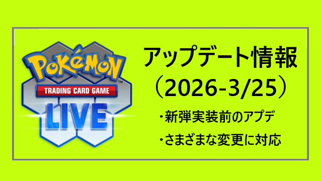 攻略 PTCGLアップデート情報(2026-3/25) 2026年3月20日 PTCGO8 日本時間2026年3月25日(水) 00:00~08:00の日程でメンテナンスが行われます。 PTCGLは上記時間中アクセス …