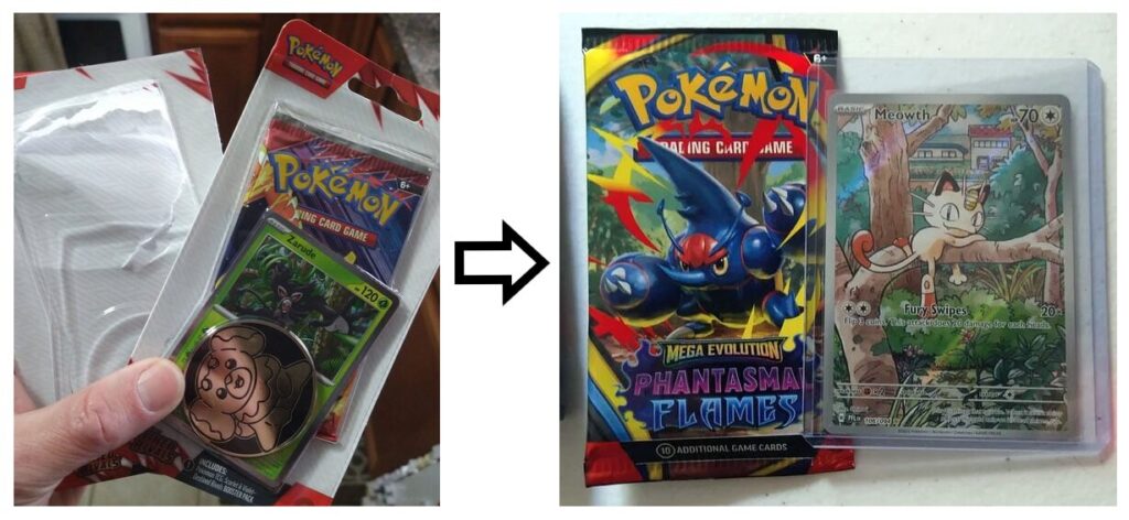 英語版のポケモンカードには「3つのランダムなパックとプロモカード」がセットになった「3-Pack Blister」という製品が存在します。今回の事件の一つでは、そのランダムなパックの中に“Phantasmal Flames”が混じってしまったようです。