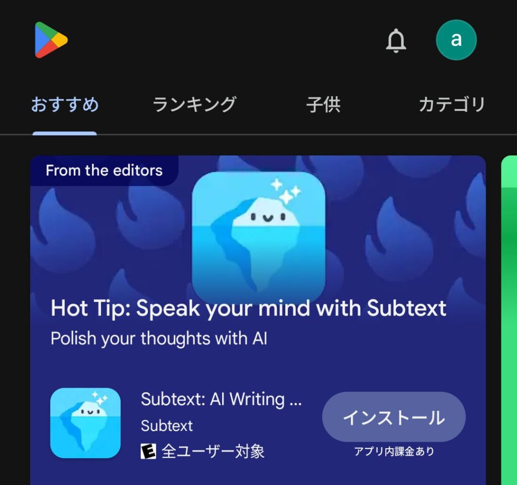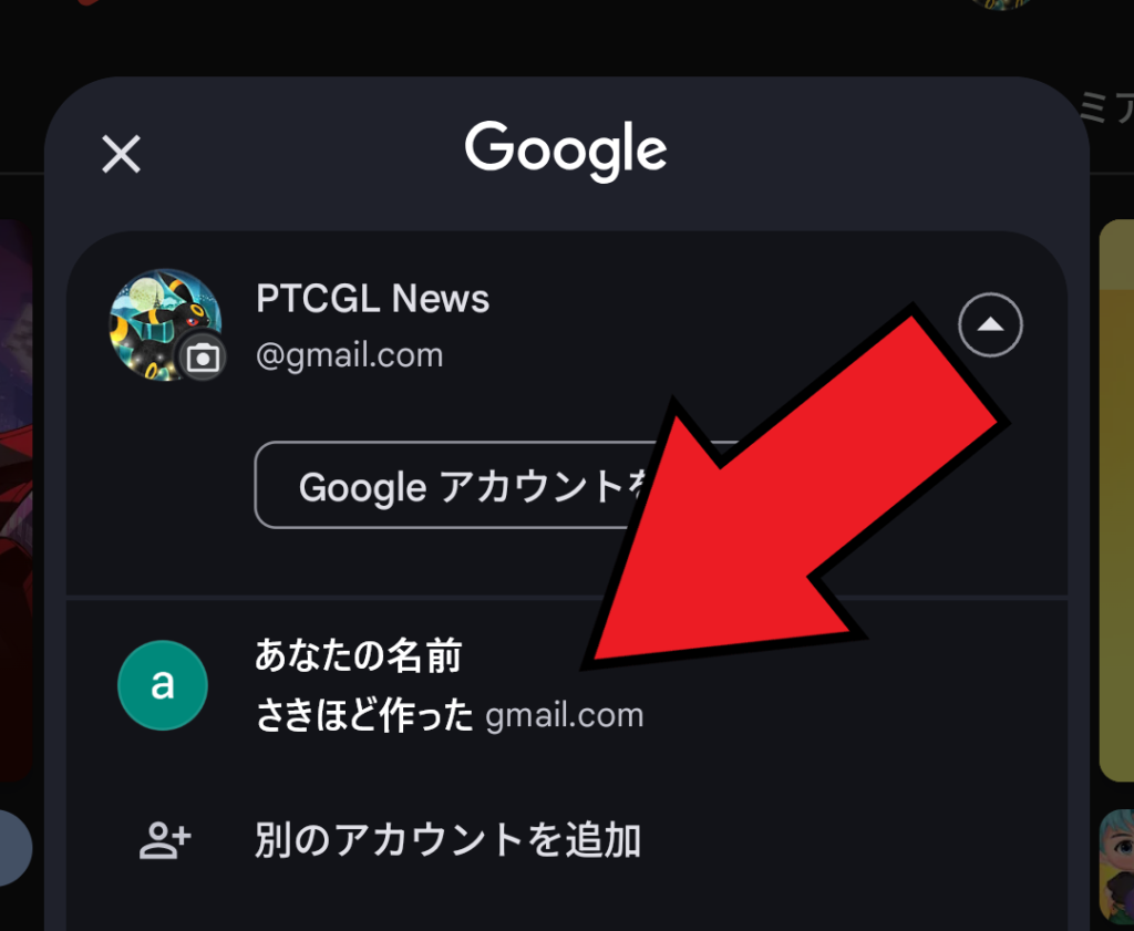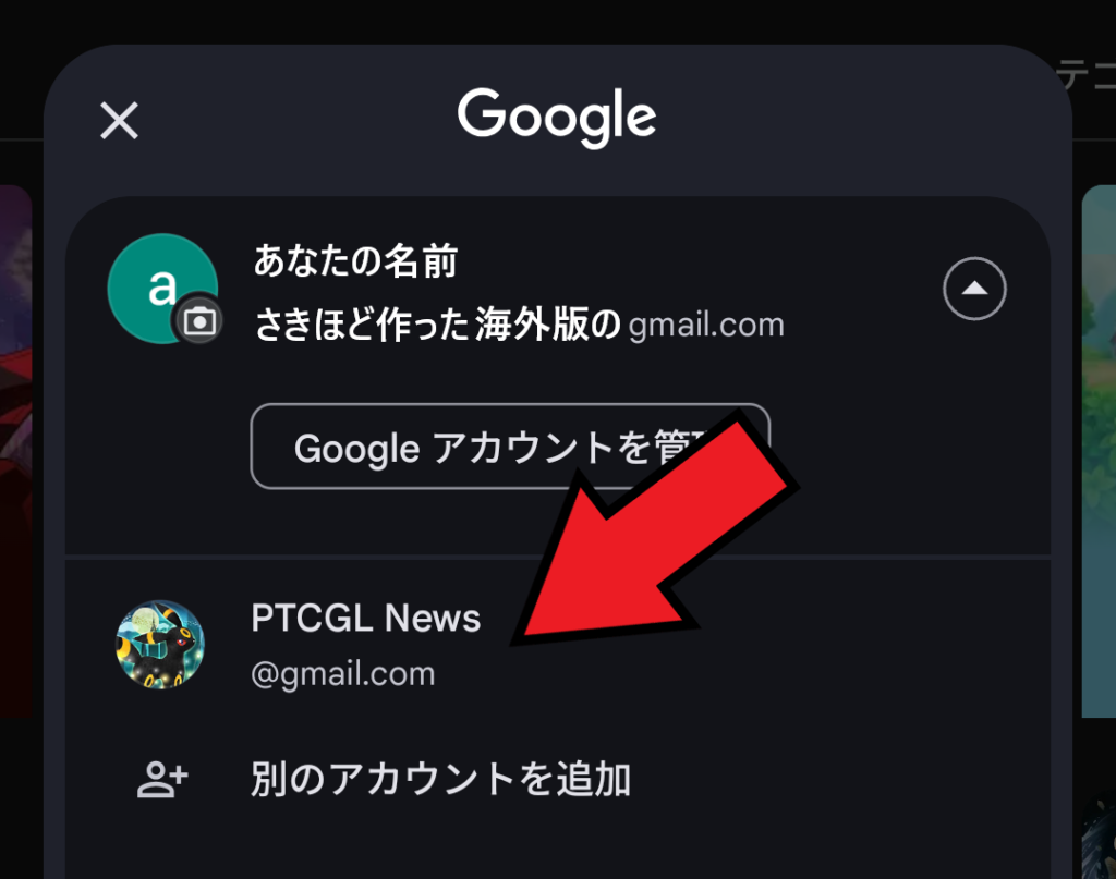 あなたがもともと使っていた日本版のGoogle Playアカウントが表示されているので、タップします。