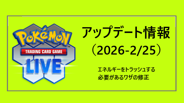 攻略 PTCGLアップデート情報(2026-2/25) 2026年2月21日 PTCGO8 日本時間2026年2月25日(水) 01:00~03:00の日程で短時間のメンテナンスが行われます。 PTCGLは上記時間中 …