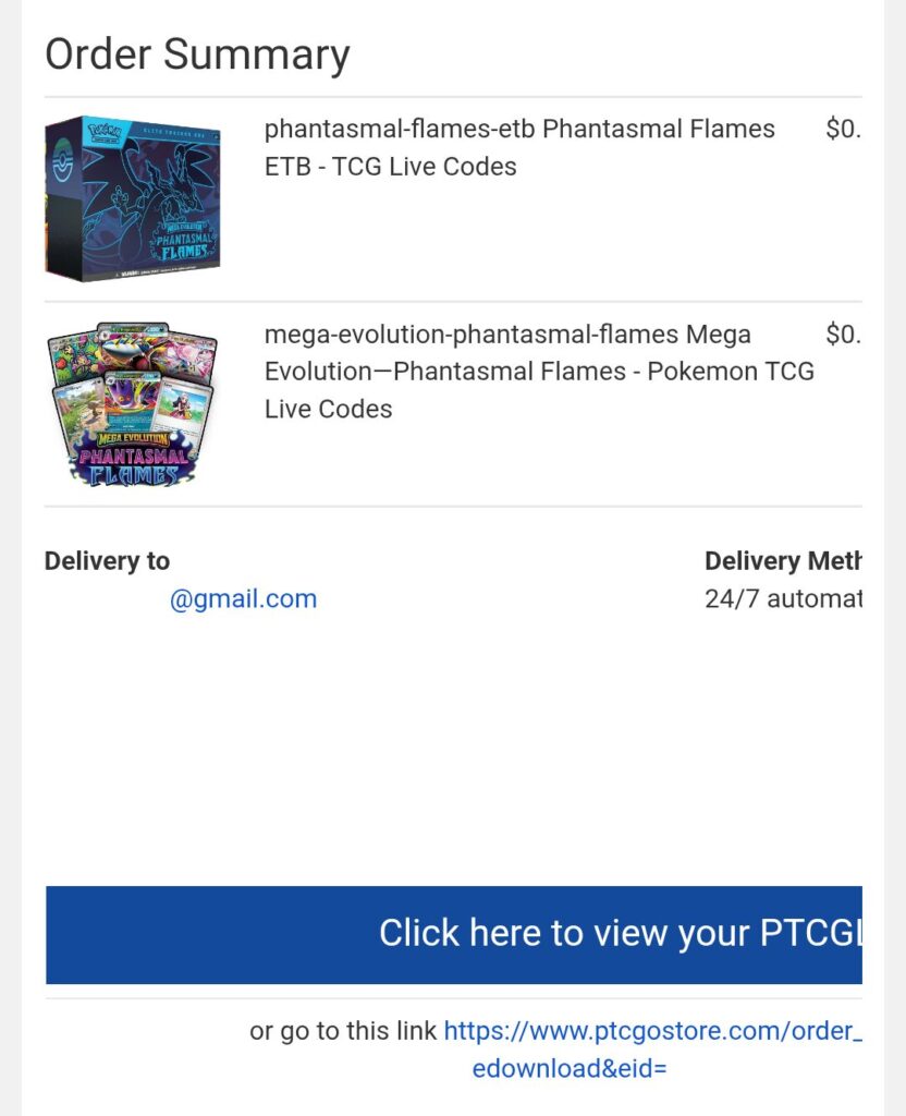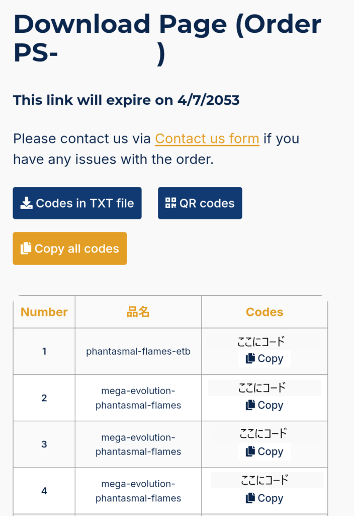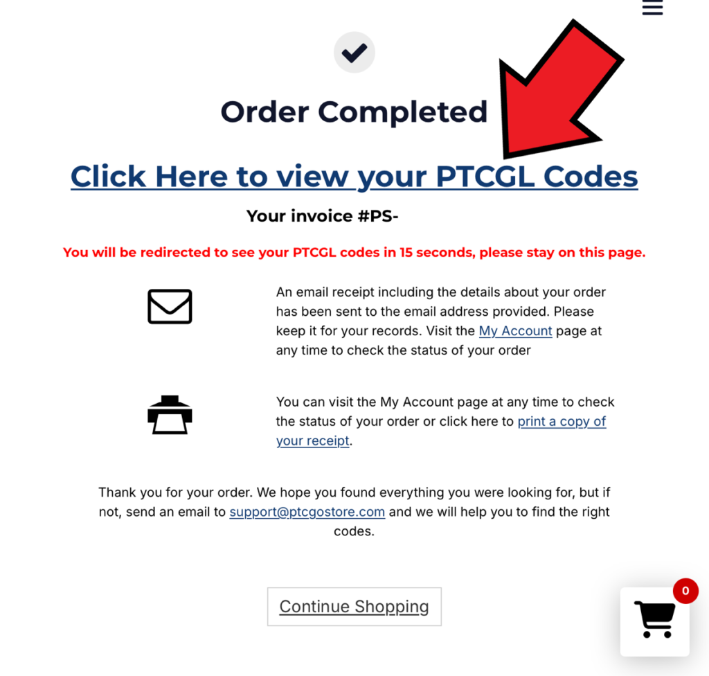 購入直後の画面の「Click Here to view your PTCGL Codes」をタップします。