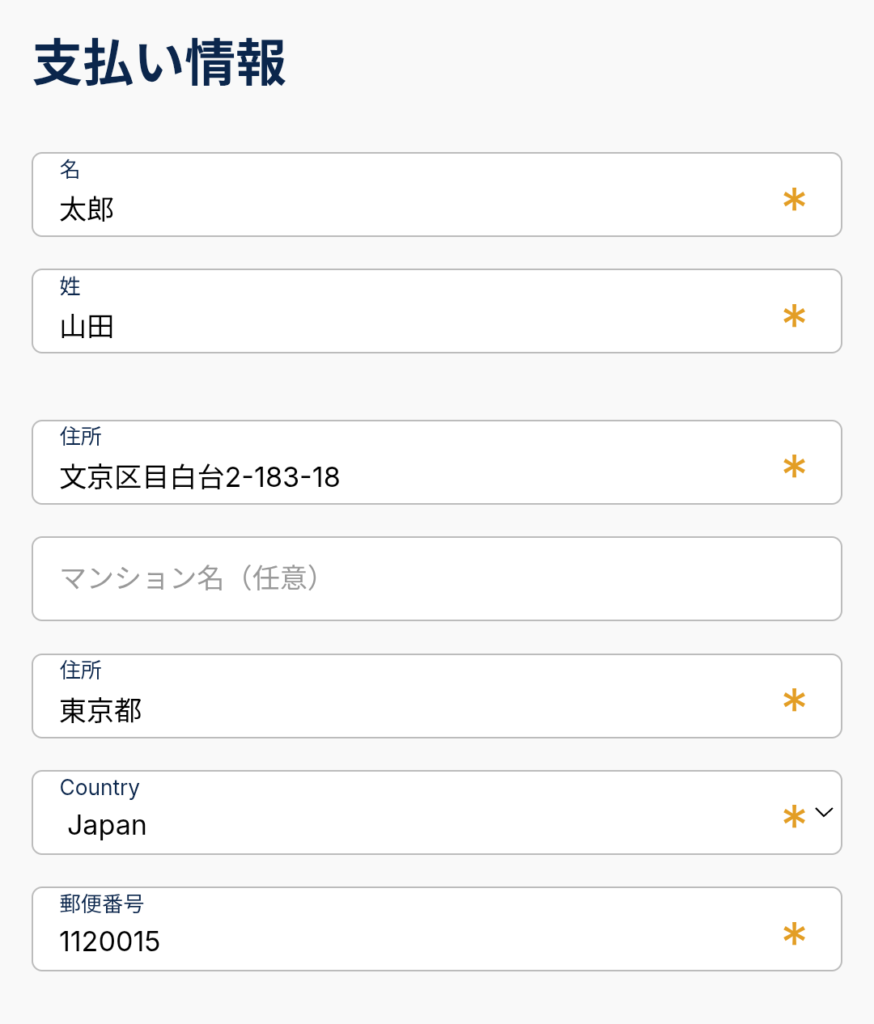 赤いマークのあるところは必須項目です。(日本語での入力で問題ありません)