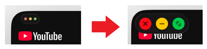 「⇔(緑)」をタップすると、そのアプリをフルスクリーンに変更します。
