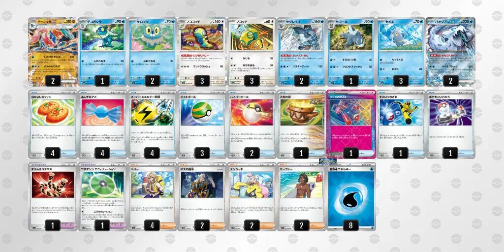 PTCGLのゲッコウガexデッキは、セグレイブ(Baxcalibur)やパオジアンex(Chien-Pao ex)がレギュレーション変更後に使えなくなるのですが、日本の環境にはとあるカードが登場しています。